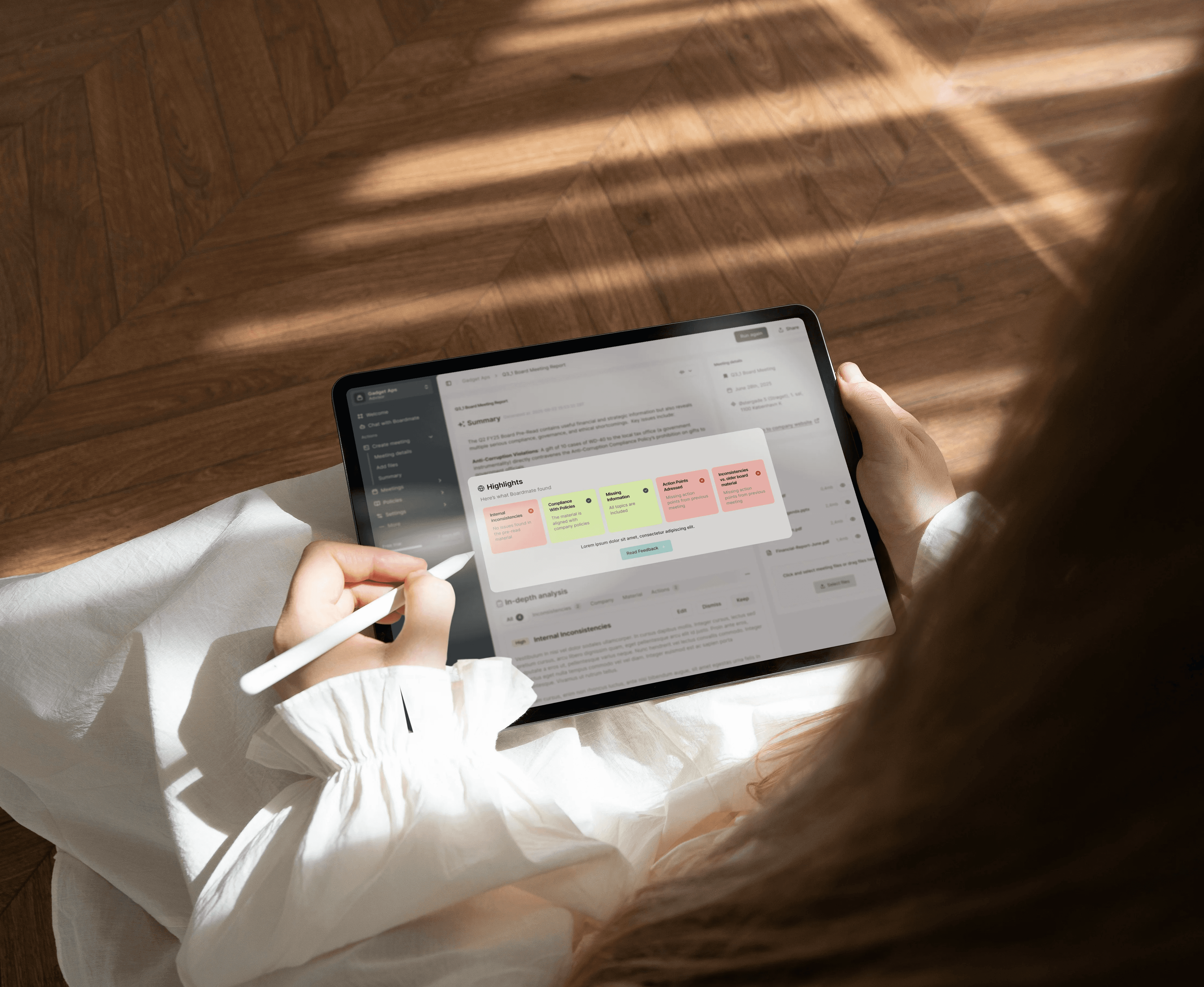 Boardmate reviews board materials to surface key points, spot inconsistencies, and identify gaps. It checks content against policies, reports, and standards, adapting expectations to each document type and region.